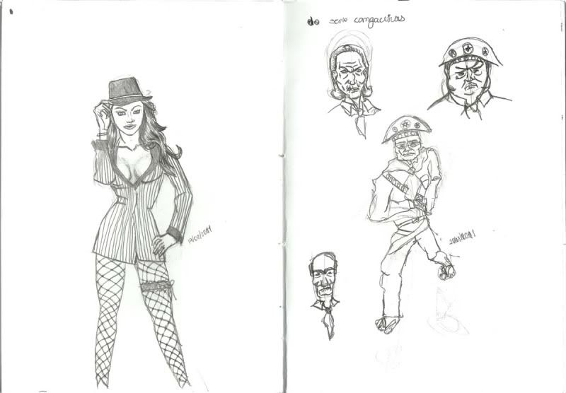 Uns esboços retirados do meu caderno. Bem recentes, tem as datas ai se der pra ver. Resolvi mudar o foco do blog. Nunca iria ter paciência para digitalizar uns arquivos que eu tenho mais antigos, se for dando coragem depois eu vou atualizando o primeiro post. Mas vou postando as coisas que vou fazendo desde o começo do ano, quero documentar a evolução, ou regressão. Sei lá. Tudo pode acontecer.